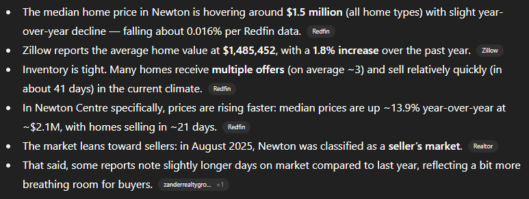 Newton remains one of Greater Boston’s most competitive housing markets. For sellers, the scarcity of inventory and steady demand still tilt the scales in your favor. For buyers, success means being strategic, financially prepared, and ready to move fast.